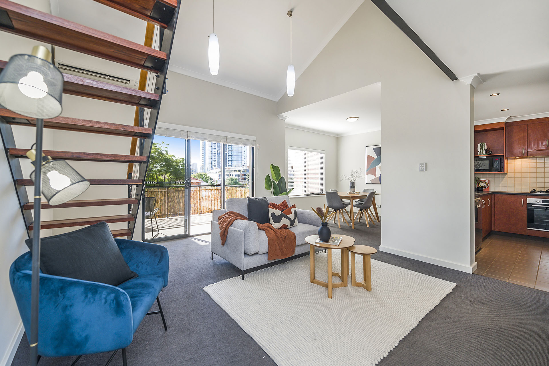 This modern and gorgeous top floor apartment offers vaulted ceilings, spacious accommodation, rare 2 side-by-side car bays, ample storage, a large northerly-facing balcony and separate laundry.