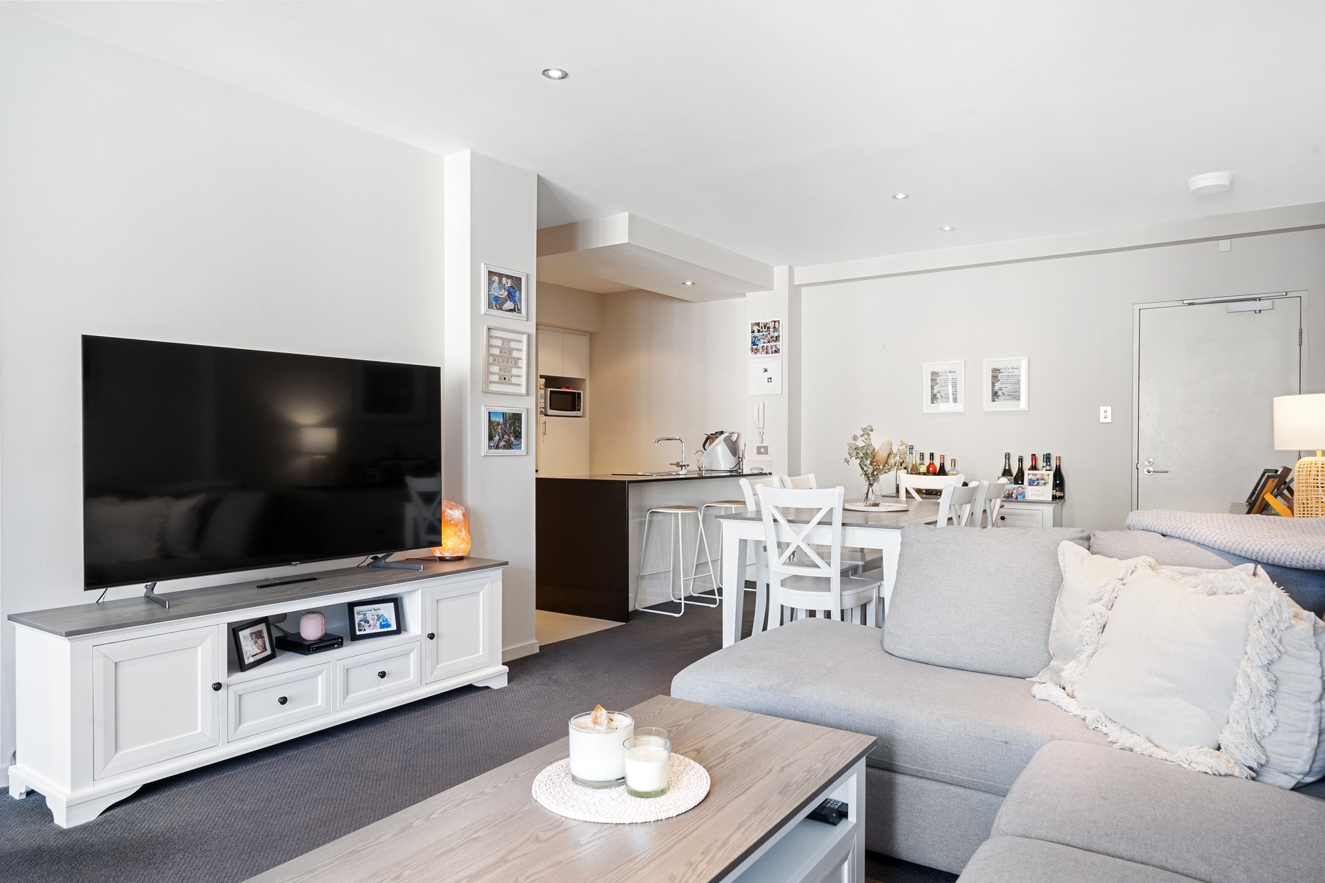Super well-presented and ideally situated on level 1, through the entrance, is an expansive living, dining, and kitchen open-plan area finished with soft feel carpets. Double sliding doors connect seamlessly to the long, undercover private balcony.